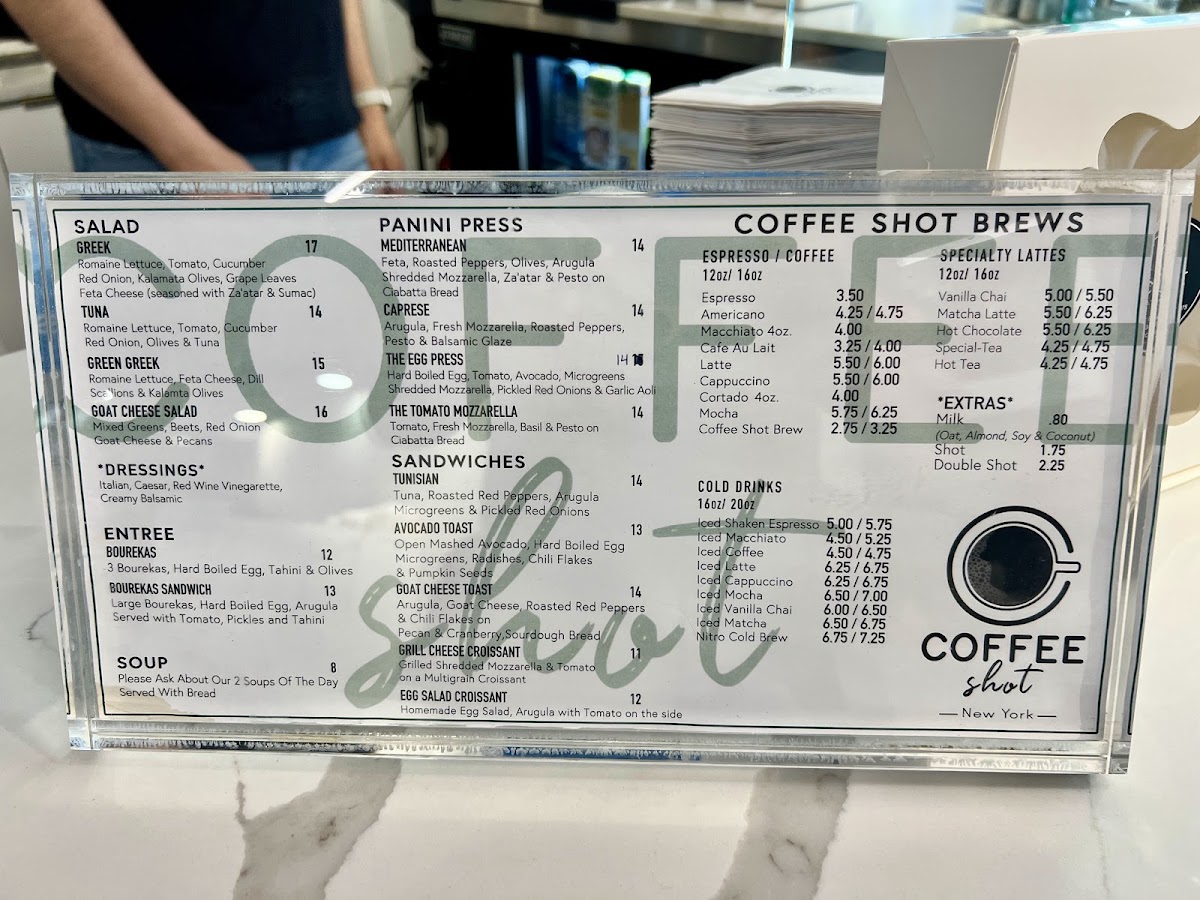Coffee Shot Menu